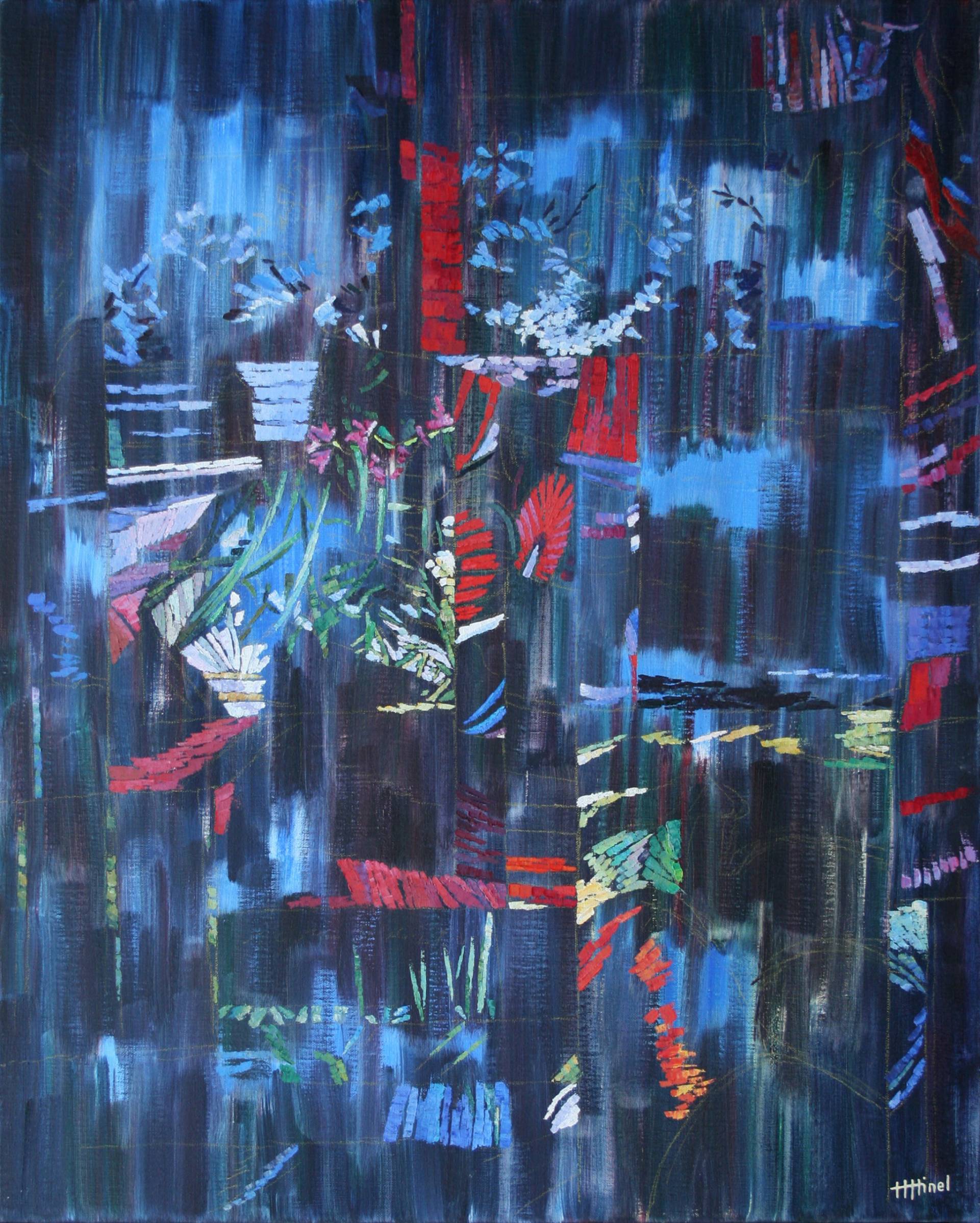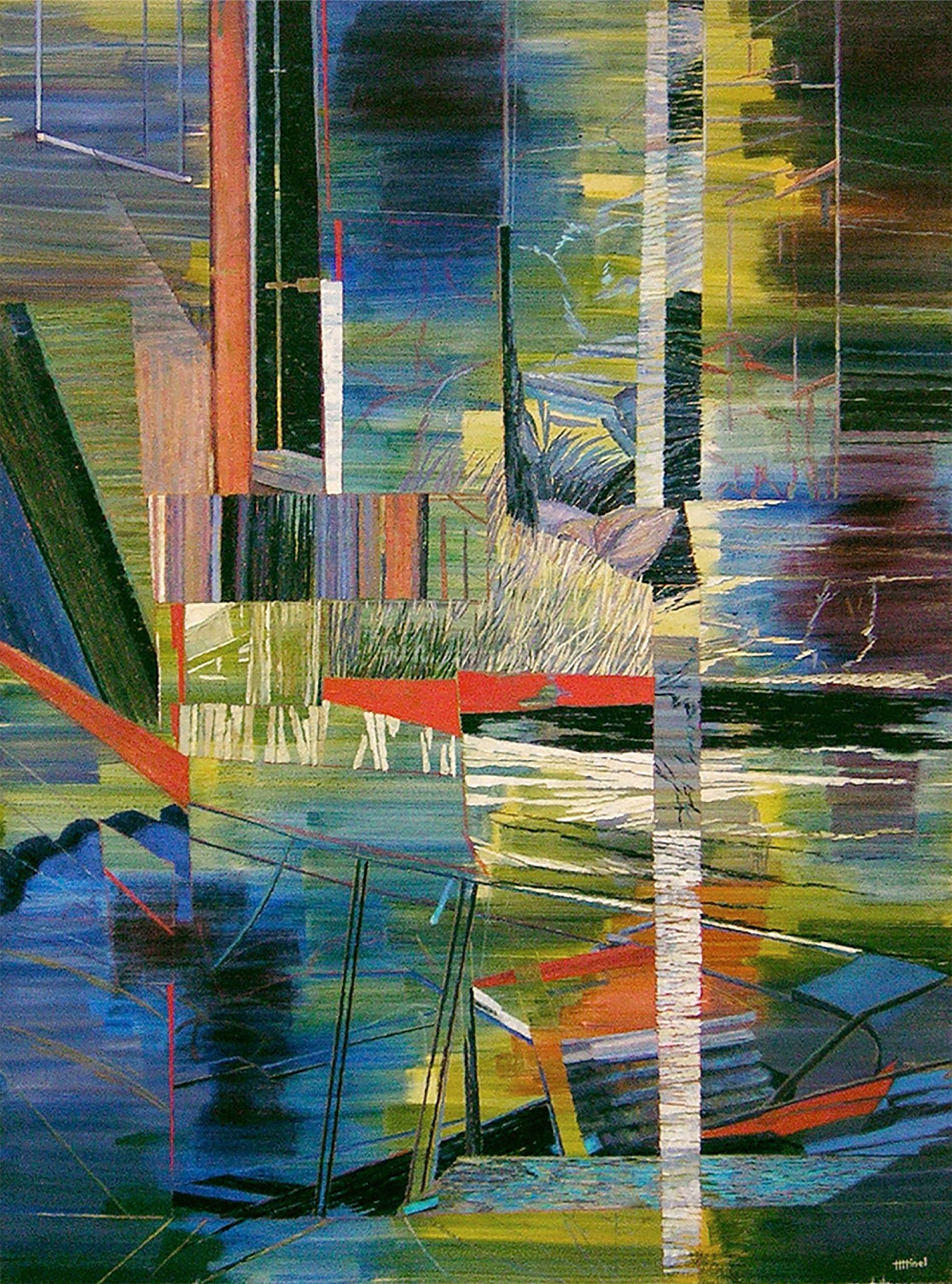 Très tôt, elle fut tentée par l’abstraction, admirant Klee et Kandinsky, captivée par la possibilité picturale de recréer la lumière par la couleur. En 1978, à l’occasion d’un séjour au Pouldu, elle éprouva le besoin de revenir à la nature, besoin d’autant plus impératif que tenant à exploiter son don et son expérience de redoutable dessinateur, d’une précision qui méprise les pires difficultés. Depuis lors, sa peinture propose une sorte d’armistice entre les deux choix. Dans une solution personnelle, elle construit ses compositions sur des principes participant du post- cubisme et de l’abstraction, principes structuraux et structurants qu’elle impose et superpose à des images prélevées de ses émotions, devant des paysages traversés ou des vues surprises, comme volées, au détour d’un village méditerranéen, d’un canal à Venise, comme d’un temple en Chine. Cette stratégie confère à ses peintures un aspect très particulier, comme si l’image naturelle était découpée en bandes, à moins qu’il ne s’agisse de deux images différentes, qu’elle mêle ensuite, probablement selon un hasard dirigé, puis juxtapose dans cet ordre nouveau qui concilie observation et recréation.