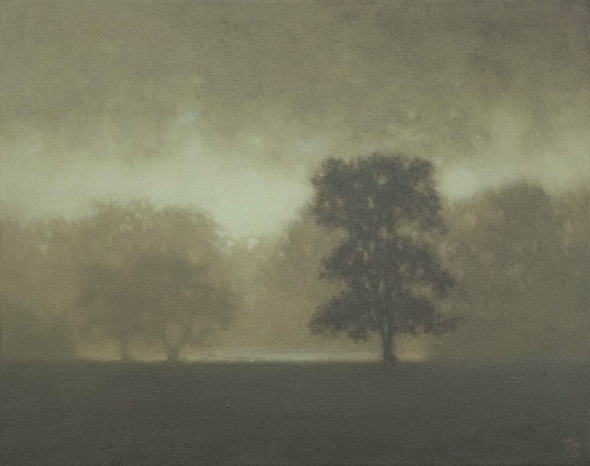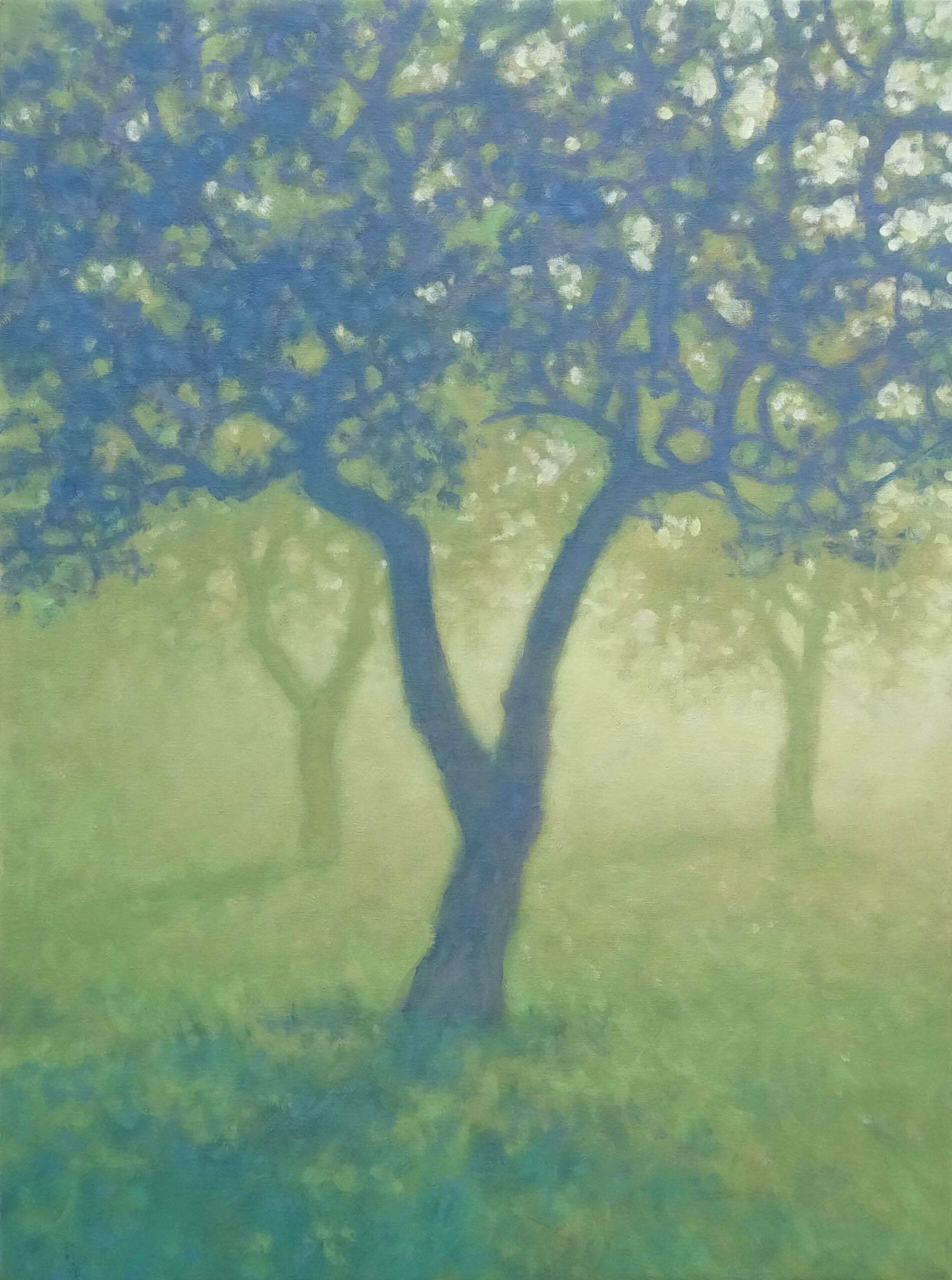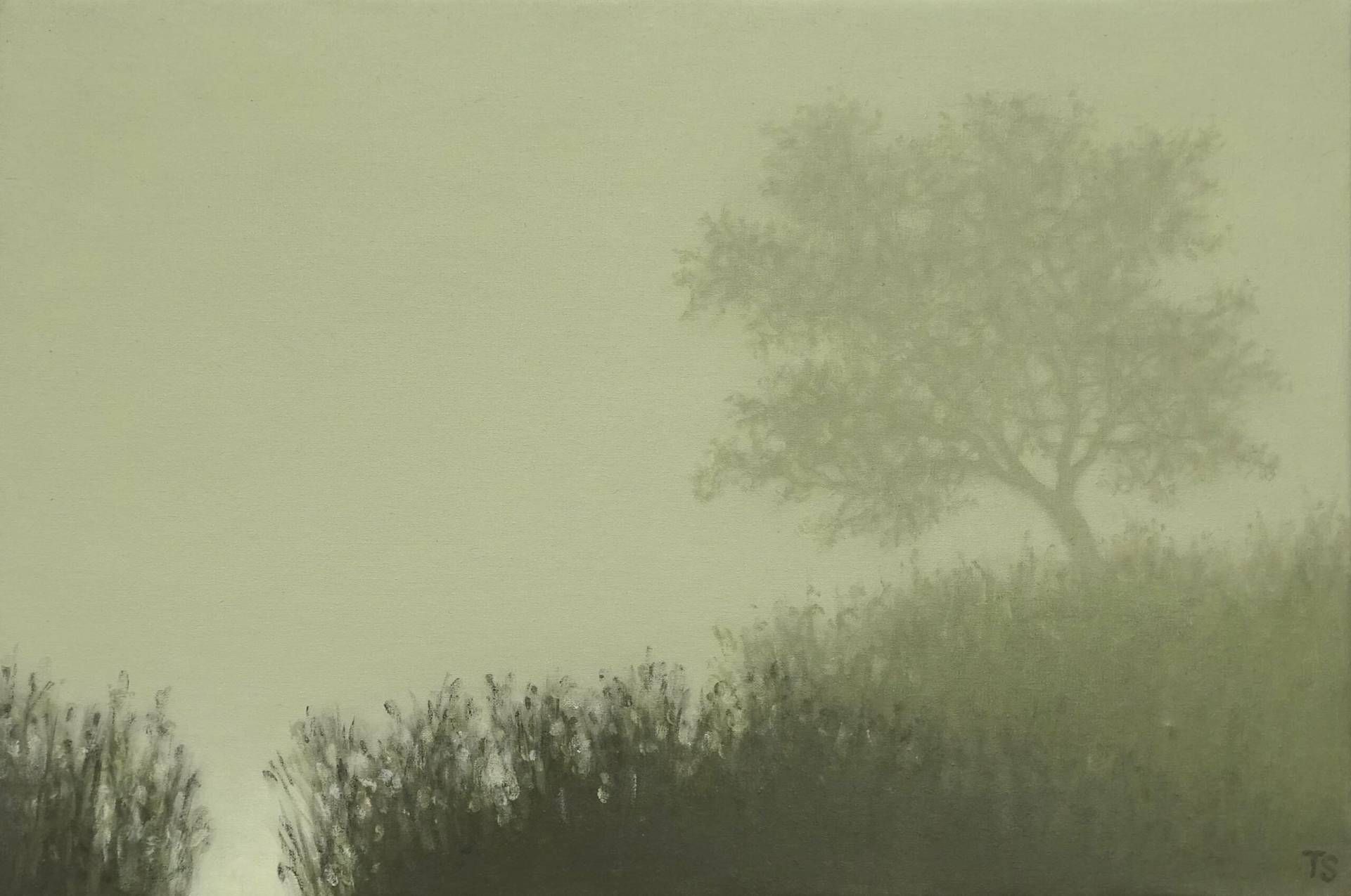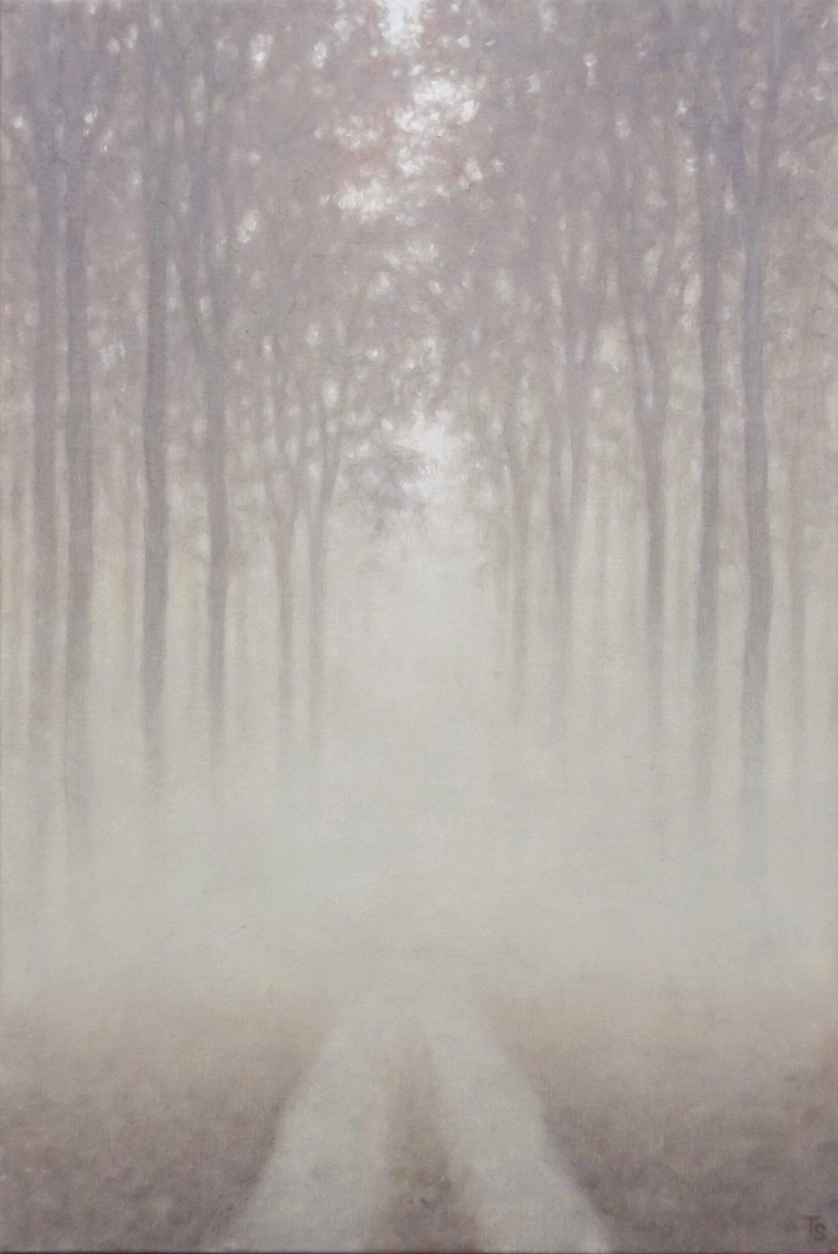 Tobias Spierenburg choisit instinctivement l’arbre comme sujet principal, point de départ même de la figuration qui lui permet d’exprimer sa fascination pour la lumière. Ses paysages minimalistes reflètent une ambiance vaporeuse entourant un arbre solitaire, sujet unique de son œuvre, en apparence simple, pour aboutir à une composition équilibrée.