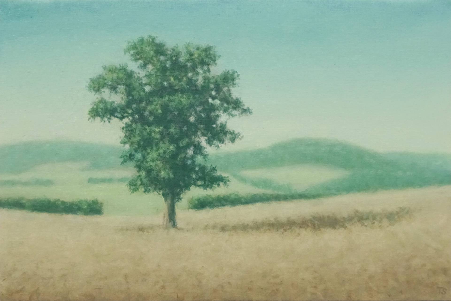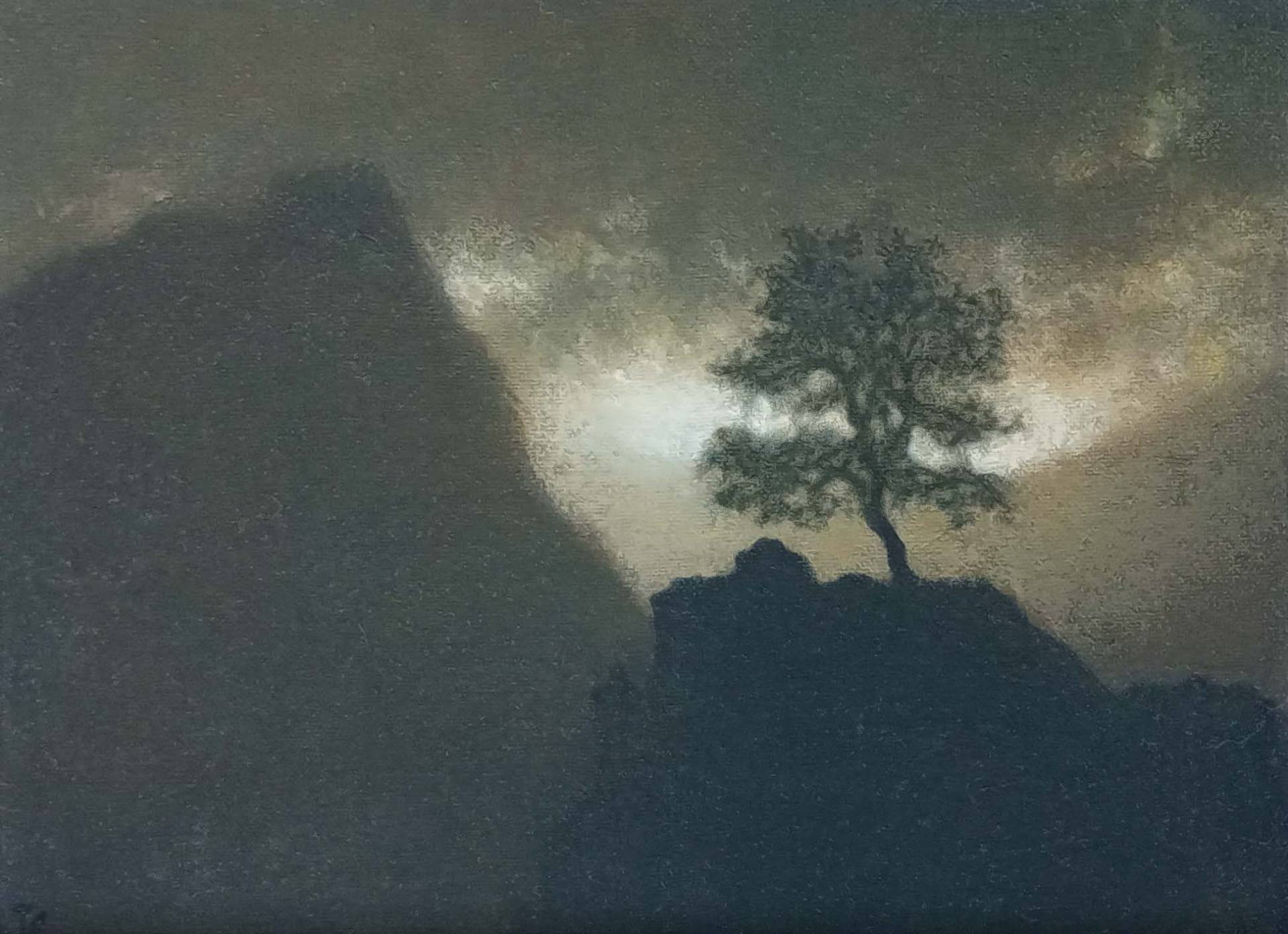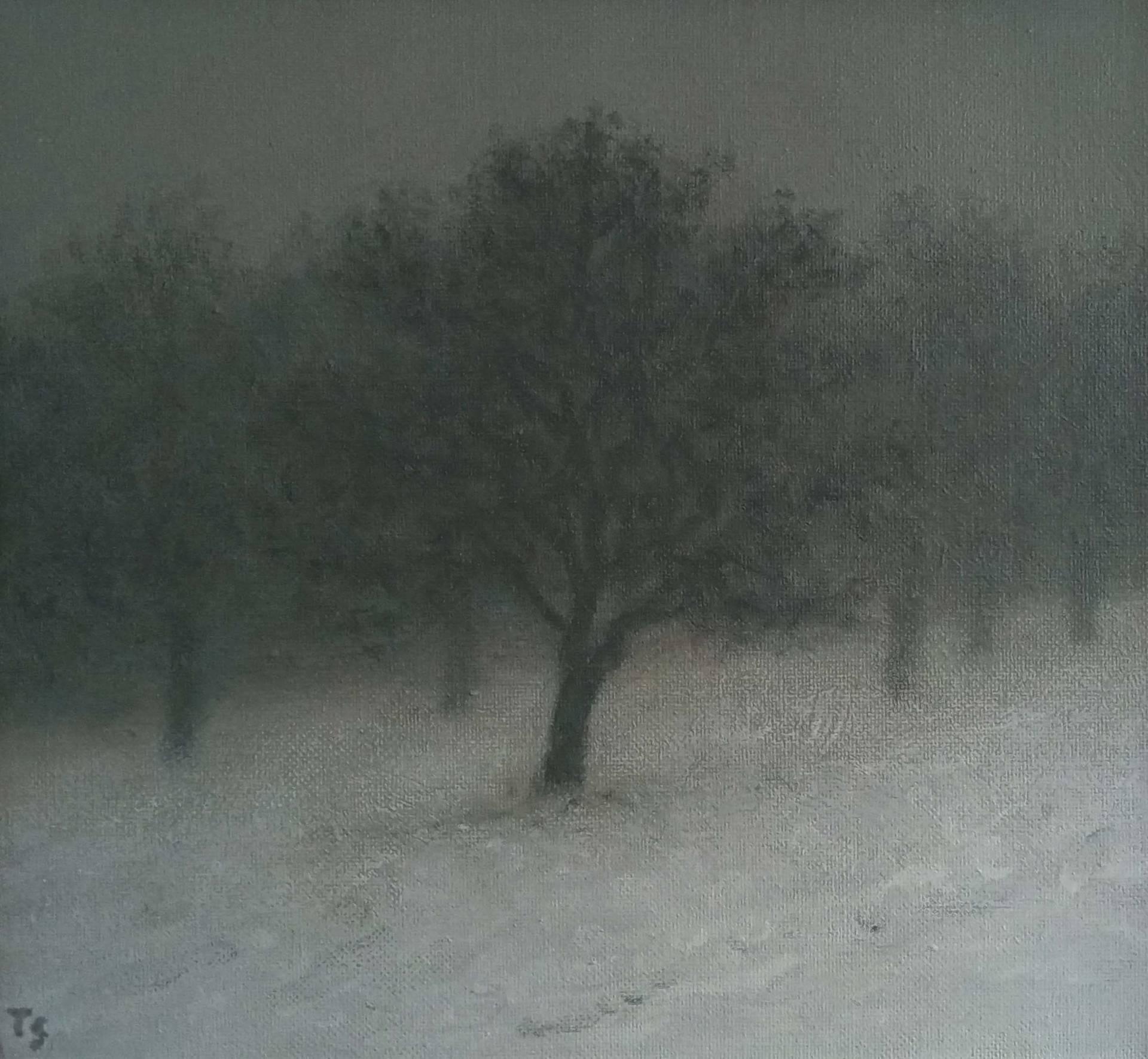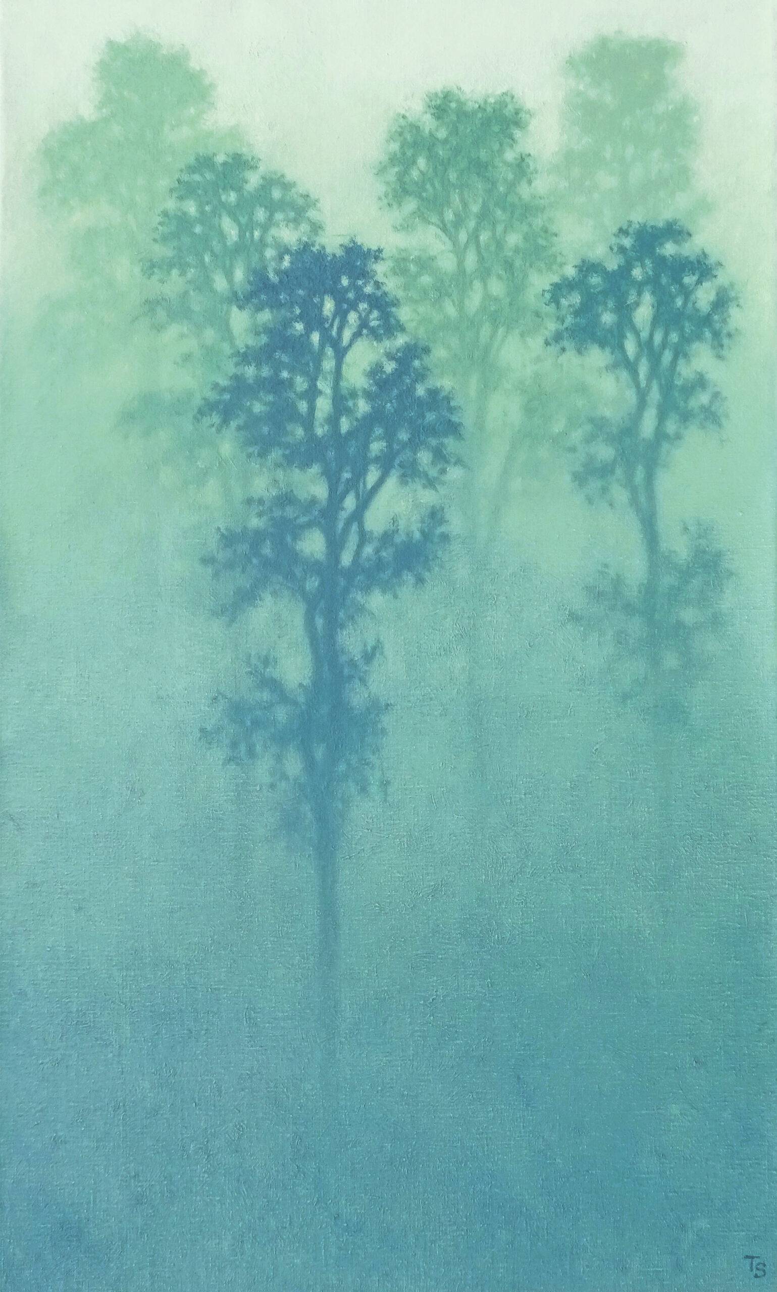 Tobias Spierenburg choisit instinctivement l’arbre comme sujet principal, point de départ même de la figuration qui lui permet d’exprimer sa fascination pour la lumière. Ses paysages minimalistes reflètent une ambiance vaporeuse entourant un arbre solitaire, sujet unique de son œuvre, en apparence simple, pour aboutir à une composition équilibrée.