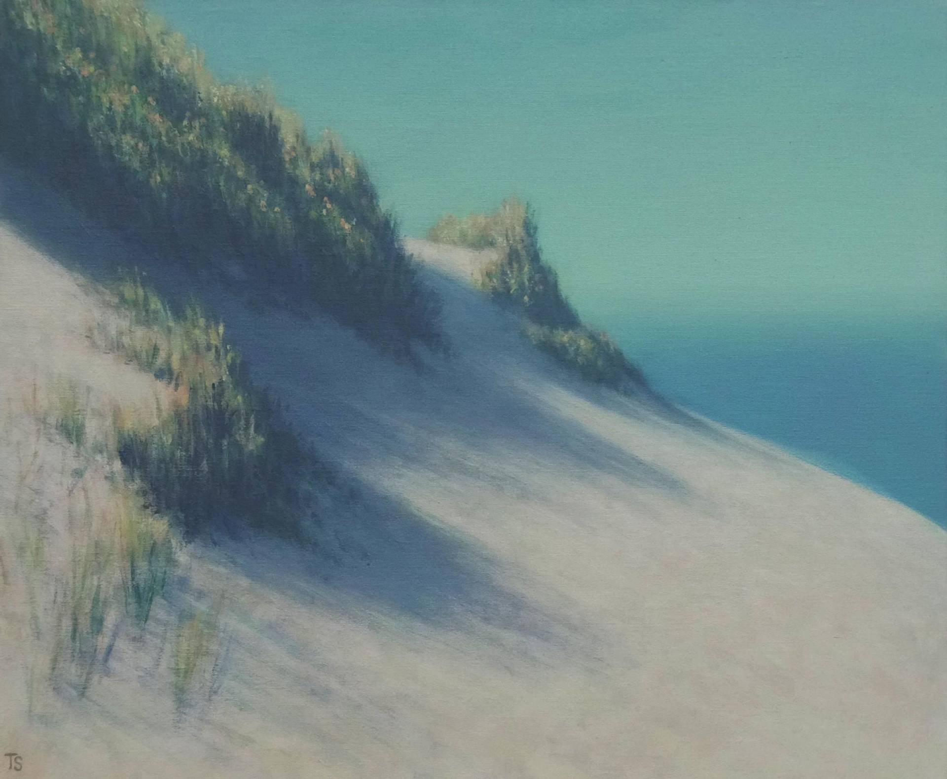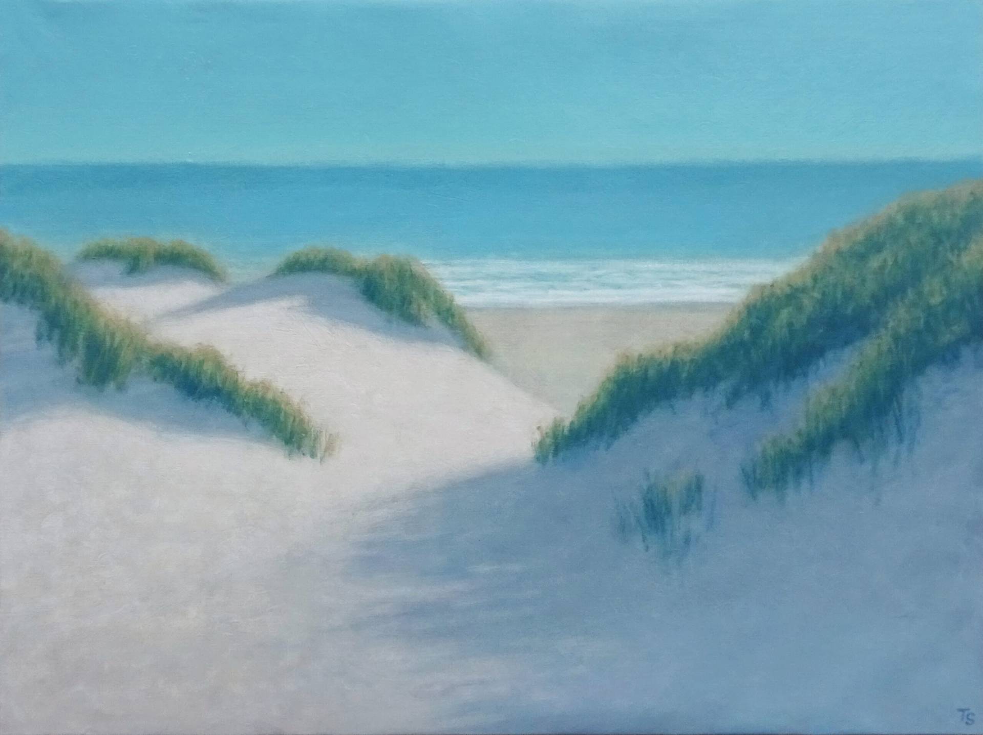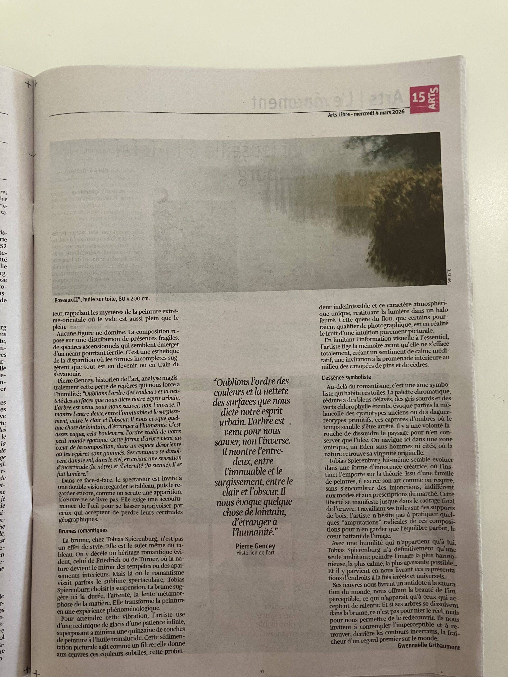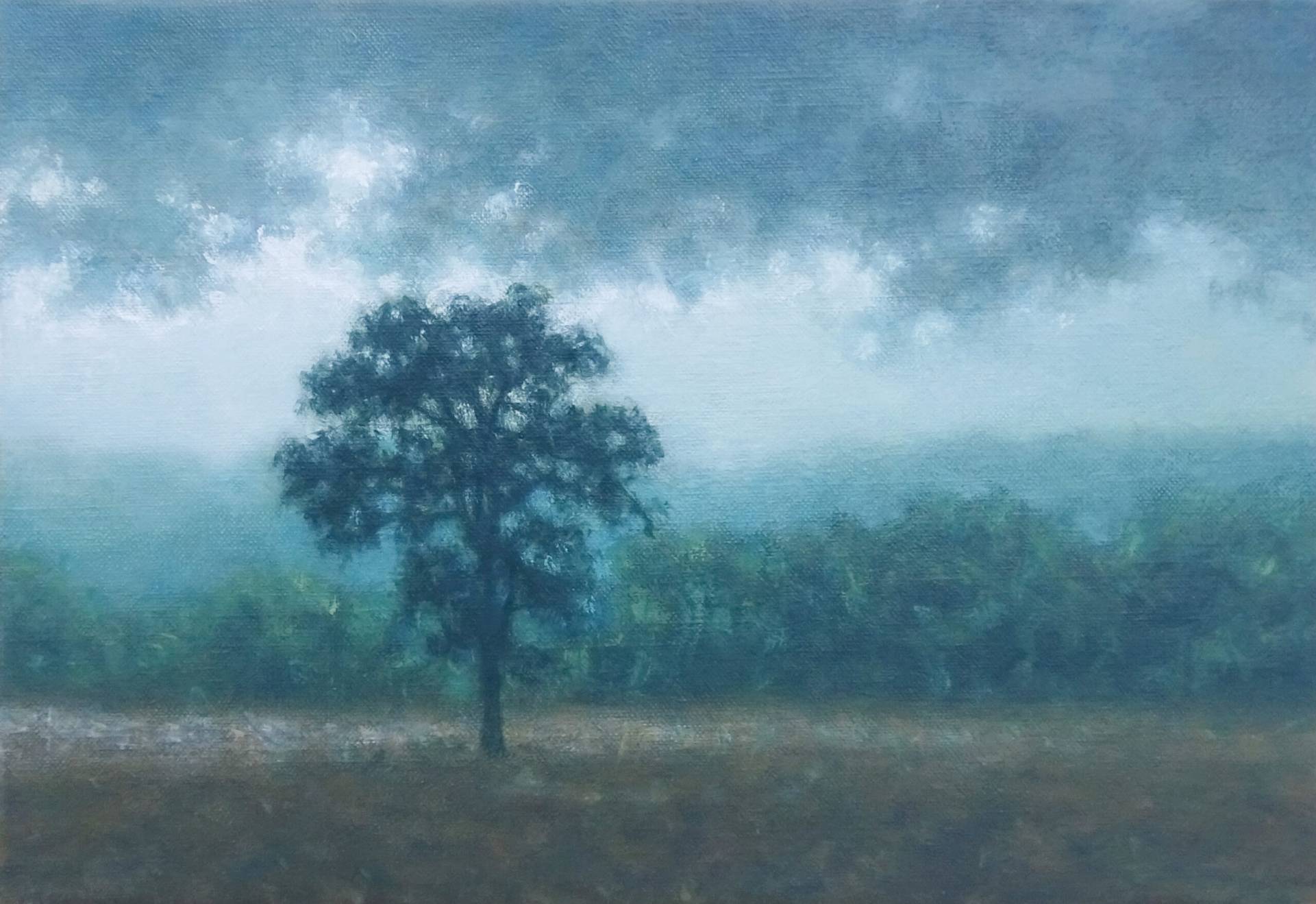 Tobias Spierenburg choisit instinctivement l’arbre comme sujet principal, point de départ même de la figuration qui lui permet d’exprimer sa fascination pour la lumière. Ses paysages minimalistes reflètent une ambiance vaporeuse entourant un arbre solitaire, sujet unique de son œuvre, en apparence simple, pour aboutir à une composition équilibrée.