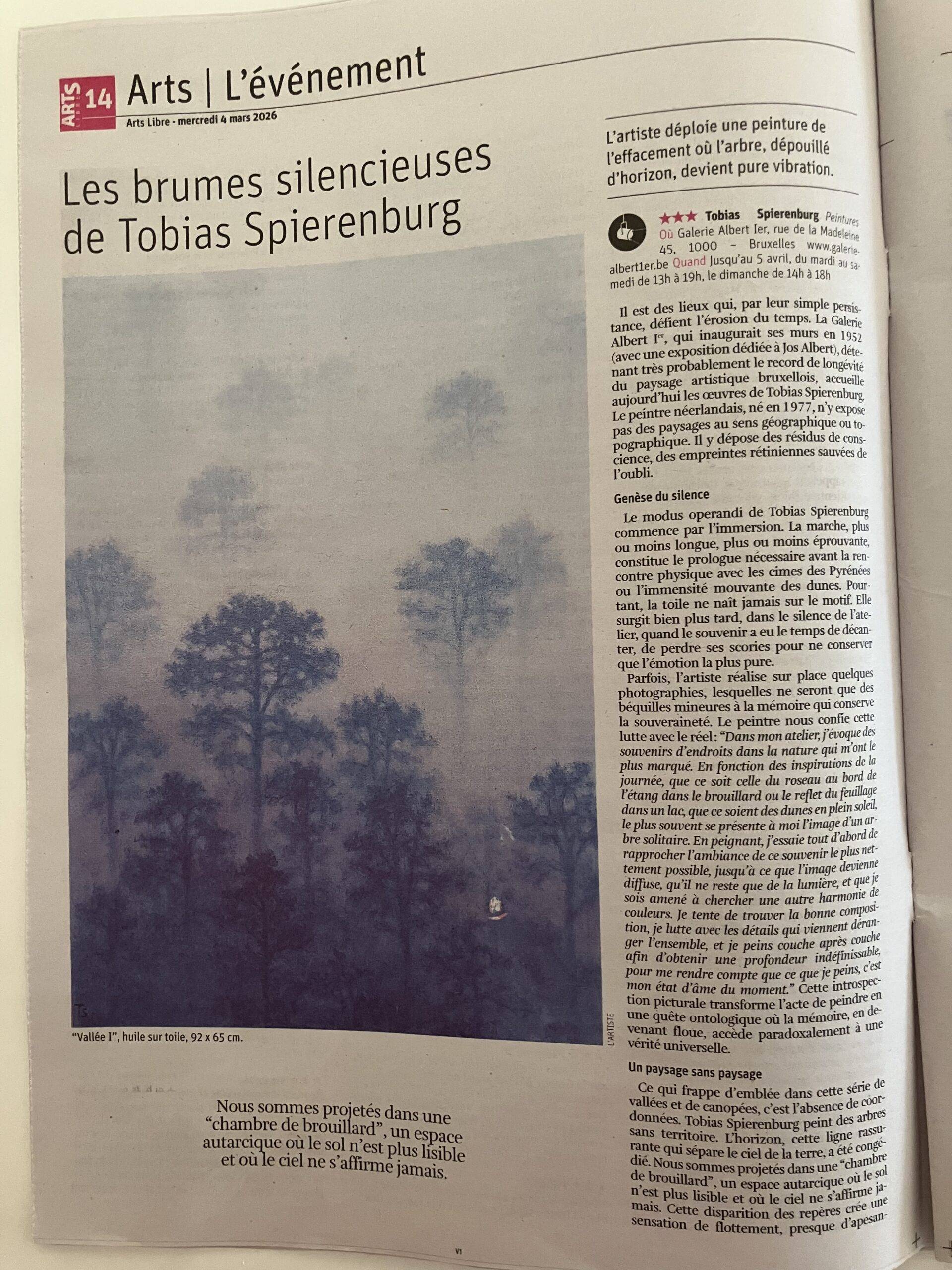 Tobias Spierenburg est né aux Pays-Bas en 1977 et est diplômé des beaux-arts en Belgique. Il vit depuis quinze ans en France, où il peint des paysages : des séries d’arbres, mais plus récemment aussi des grands formats de nuages, d’ombres dans la forêt et de panoramas dans le brouillard.