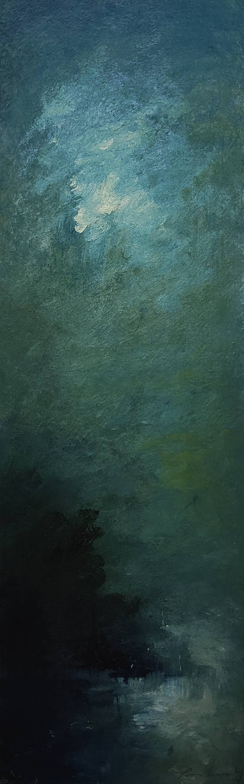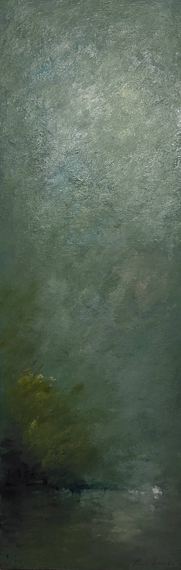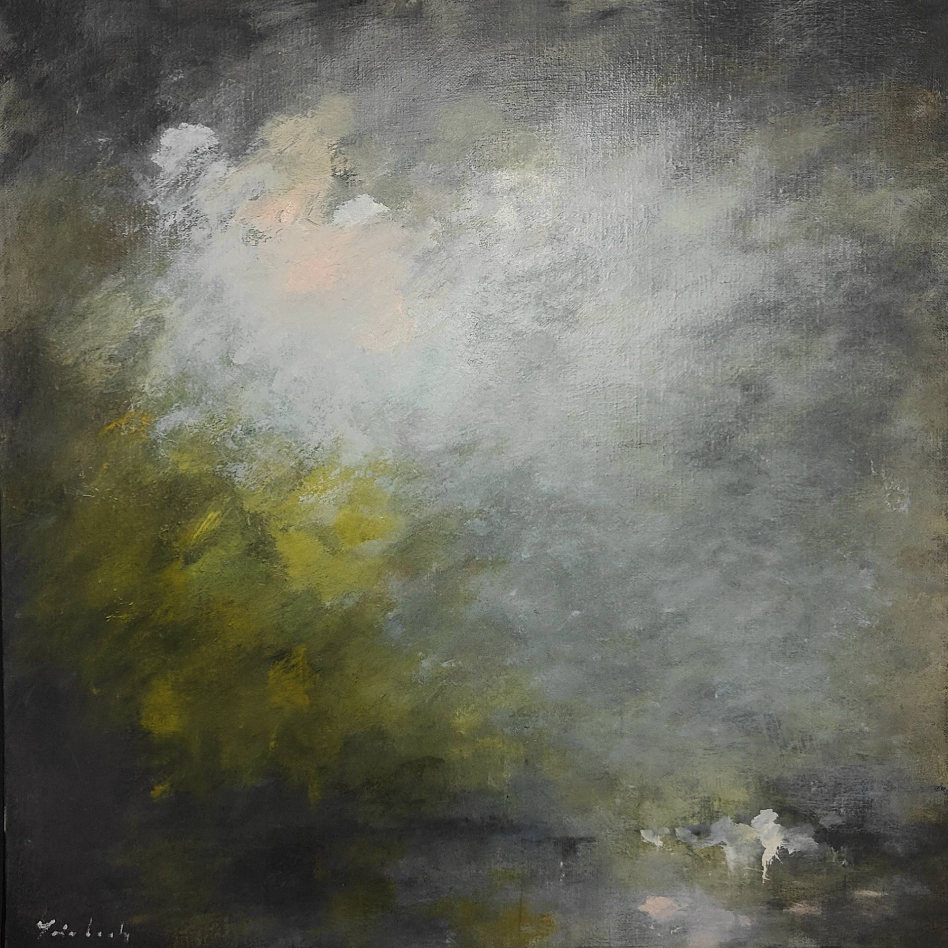 Peintre solitaire qui vous invite à l’accompagner dans ses silences feutrés, atmosphères brumeuses, mystérieuses, dans ses jeux de lumières après la pluie.